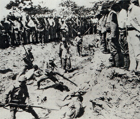 - Dès 1937, la capitale de la Chine à l'époque Nankin est prise par les japonais qui occupent la villes pendant 6 semaines. On compte le nombre de victimes entre 100 000 et 300 000 morts. Les hommes de tout âge sont tués au sabre et à la bayonette, les femmes sont violées et éventrées. C'est "Le viol de Nankin"